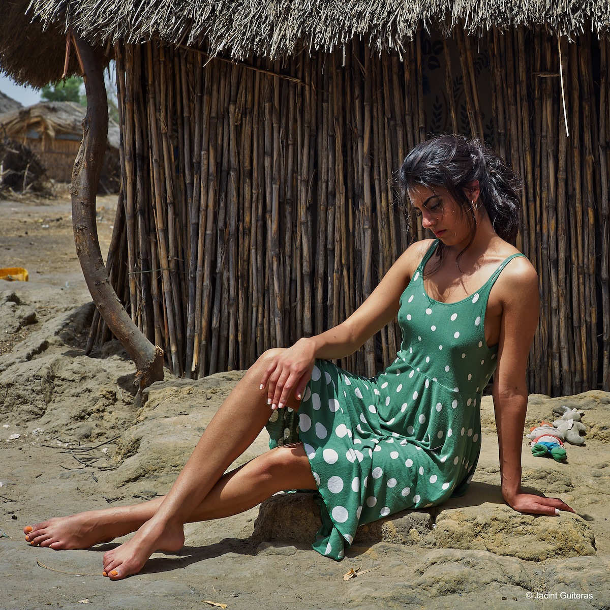 Sarisha in a green polka dot dress